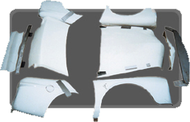 It will normally take approximately 3-4 hours to remove the donor car's hood, bumper and fenders. You then remove the vehicle's tail lights, rear bumper cover and the gas cap door. After the body parts have been removed, there is some minor cutting and welding that is described in further detail with the kit instructions. When that has been completed, our fiberglass components bolt on, screw on and glue on in approximately 50 man-hours.